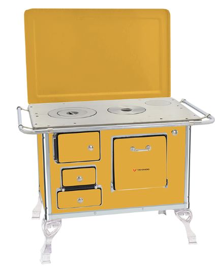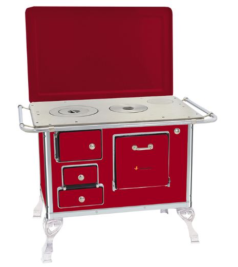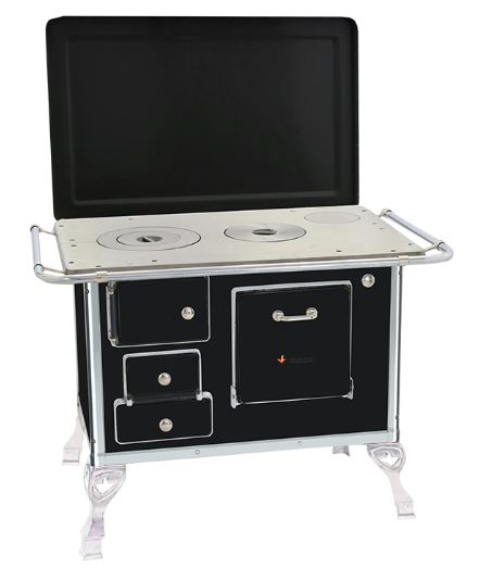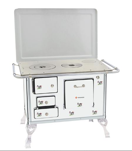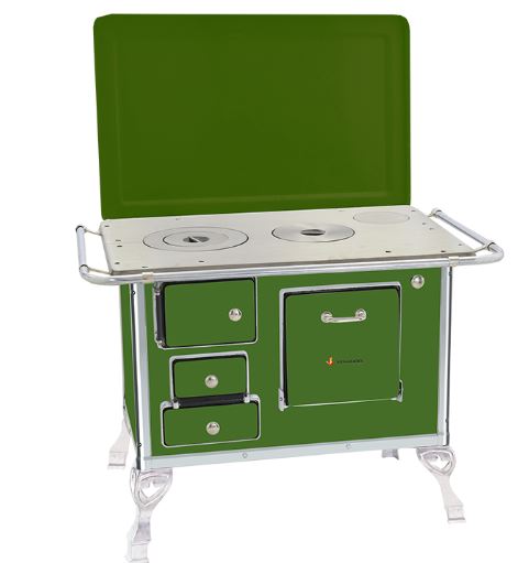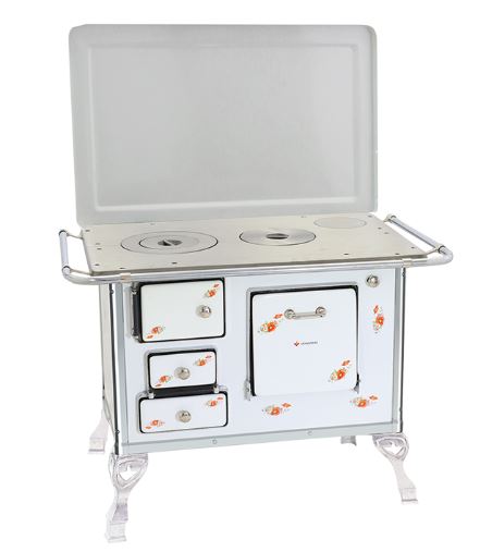 ■ Chapa em ferro fundido com super polimento;■ Tampa opcional;■ Pés em alumínio injetado;■ Disponível na cores branco, preto, amarelo, verde, vermelho intenso e azul;■ Estampa opcional florida ou vaquinha, somente na cor branca;■ Corpo e forno do fogão totalmente em aço carbono com acabamento esmaltado à fogo;■ Cantoneiras em aço inoxidável;■ Puxador e escoras do varão em alumínio injetado com acabamento cromado;■ Varões em tubo de aço cromado;■ Modelo com saída da chaminé na chapa ou saída traseira, opcional registro de ar direito ou esquerdo;■ Guarnições em alumínio injetado com acabamento polido.
